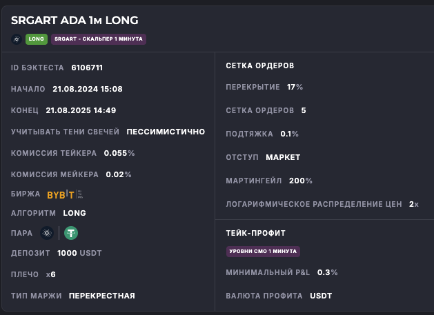 Внимание: Торговля на финансовых рынках связана с рисками потери капитала. Результаты бэктестов не гарантируют будущей доходности. Настройки подобраны для информационных целей и не являются инвестиционной рекомендацией. Любые решения о торговле вы принимаете самостоятельно.