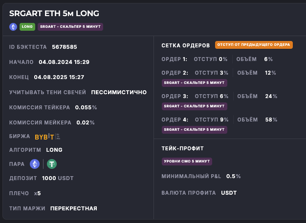 Внимание: Торговля на финансовых рынках связана с рисками потери капитала. Результаты бэктестов не гарантируют будущей доходности. Настройки подобраны для информационных целей и не являются инвестиционной рекомендацией. Любые решения о торговле вы принимаете самостоятельно.
