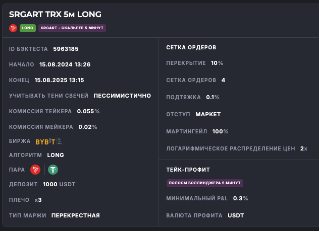 Внимание: Торговля на финансовых рынках связана с рисками потери капитала. Результаты бэктестов не гарантируют будущей доходности. Настройки подобраны для информационных целей и не являются инвестиционной рекомендацией. Любые решения о торговле вы принимаете самостоятельно.