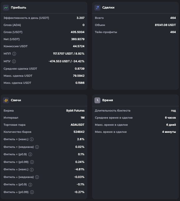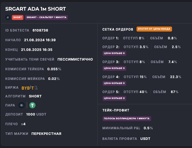 Внимание: Торговля на финансовых рынках связана с рисками потери капитала. Результаты бэктестов не гарантируют будущей доходности. Настройки подобраны для информационных целей и не являются инвестиционной рекомендацией. Любые решения о торговле вы принимаете самостоятельно.