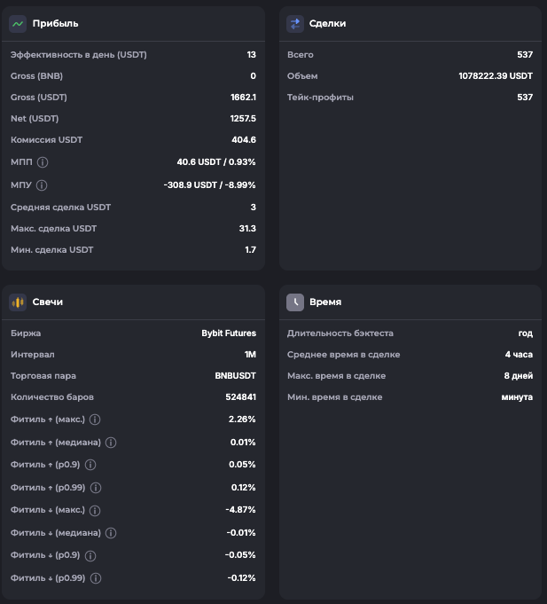 Внимание: Торговля на финансовых рынках связана с рисками потери капитала. Результаты бэктестов не гарантируют будущей доходности. Настройки подобраны для информационных целей и не являются инвестиционной рекомендацией. Любые решения о торговле вы принимаете самостоятельно.