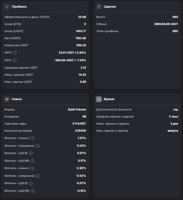 Внимание: Торговля на финансовых рынках связана с рисками потери капитала. Результаты бэктестов не гарантируют будущей доходности. Настройки подобраны для информационных целей и не являются инвестиционной рекомендацией. Любые решения о торговле вы принимаете самостоятельно.