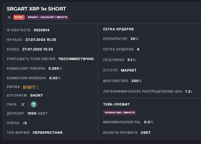 Скальпер: Short, 1м ТФ — XRP