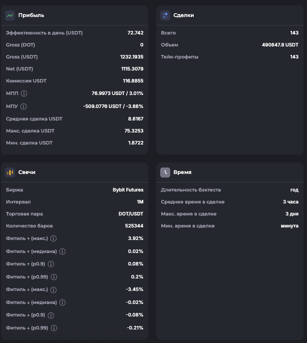 Внимание: Торговля на финансовых рынках связана с рисками потери капитала. Результаты бэктестов не гарантируют будущей доходности. Настройки подобраны для информационных целей и не являются инвестиционной рекомендацией. Любые решения о торговле вы принимаете самостоятельно.