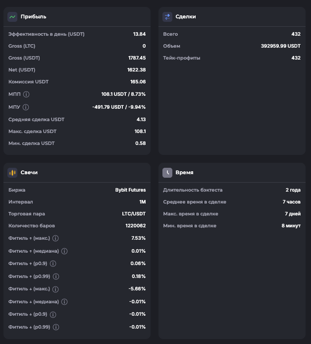 Внимание: Торговля на финансовых рынках связана с рисками потери капитала. Результаты бэктестов не гарантируют будущей доходности. Настройки подобраны для информационных целей и не являются инвестиционной рекомендацией. Любые решения о торговле вы принимаете самостоятельно.