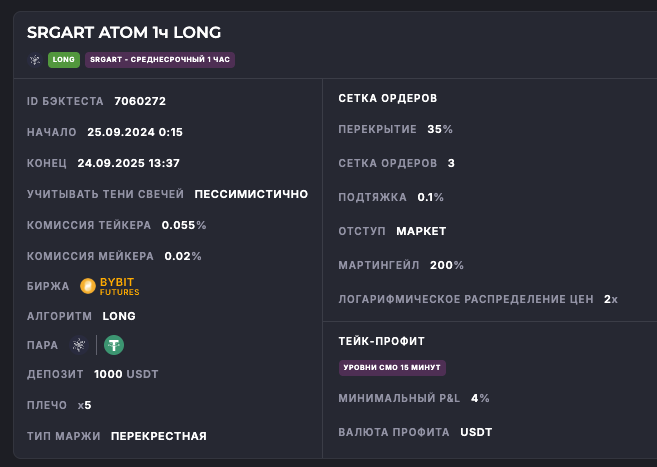 Внимание: Торговля на финансовых рынках связана с рисками потери капитала. Результаты бэктестов не гарантируют будущей доходности. Настройки подобраны для информационных целей и не являются инвестиционной рекомендацией. Любые решения о торговле вы принимаете самостоятельно.