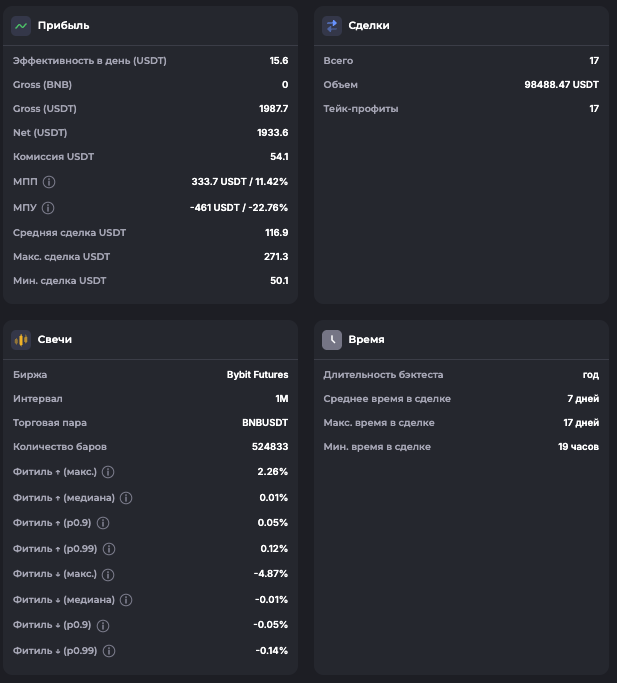 Внимание: Торговля на финансовых рынках связана с рисками потери капитала. Результаты бэктестов не гарантируют будущей доходности. Настройки подобраны для информационных целей и не являются инвестиционной рекомендацией. Любые решения о торговле вы принимаете самостоятельно.