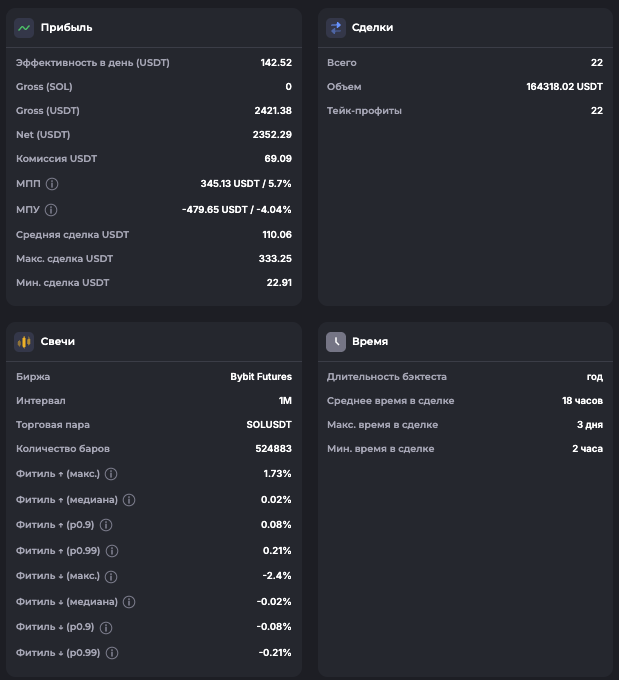 Внимание: Торговля на финансовых рынках связана с рисками потери капитала. Результаты бэктестов не гарантируют будущей доходности. Настройки подобраны для информационных целей и не являются инвестиционной рекомендацией. Любые решения о торговле вы принимаете самостоятельно.