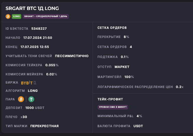 Внимание: Торговля на финансовых рынках связана с рисками потери капитала. Результаты бэктестов не гарантируют будущей доходности. Настройки подобраны для информационных целей и не являются инвестиционной рекомендацией. Любые решения о торговле вы принимаете самостоятельно.