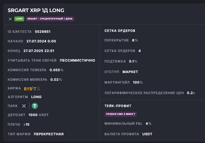 Внимание: Торговля на финансовых рынках связана с рисками потери капитала. Результаты бэктестов не гарантируют будущей доходности. Настройки подобраны для информационных целей и не являются инвестиционной рекомендацией. Любые решения о торговле вы принимаете самостоятельно.