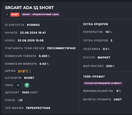 Внимание: Торговля на финансовых рынках связана с рисками потери капитала. Результаты бэктестов не гарантируют будущей доходности. Настройки подобраны для информационных целей и не являются инвестиционной рекомендацией. Любые решения о торговле вы принимаете самостоятельно.