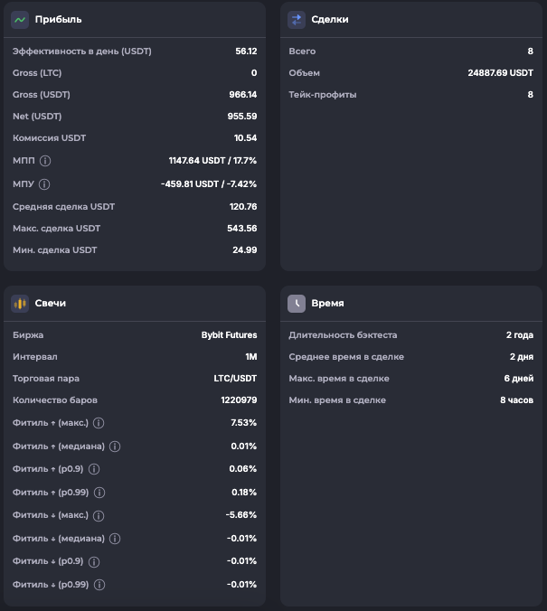 Внимание: Торговля на финансовых рынках связана с рисками потери капитала. Результаты бэктестов не гарантируют будущей доходности. Настройки подобраны для информационных целей и не являются инвестиционной рекомендацией. Любые решения о торговле вы принимаете самостоятельно.