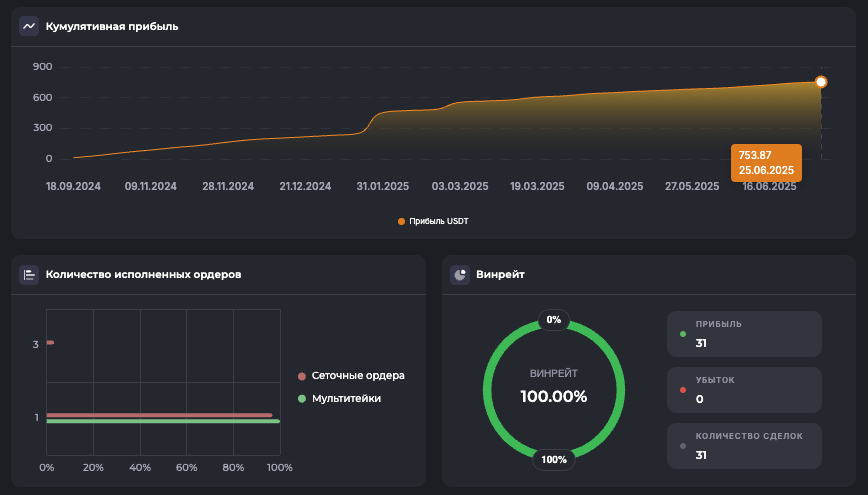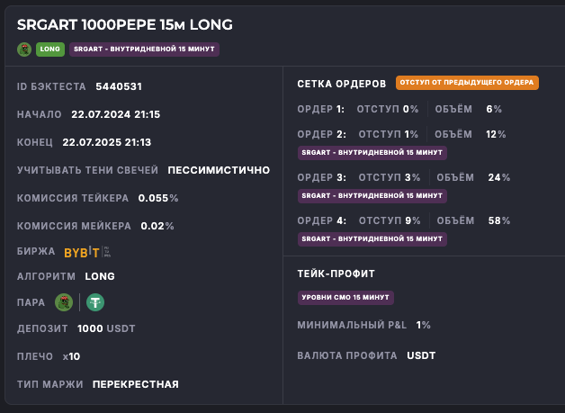 Внимание: Торговля на финансовых рынках связана с рисками потери капитала. Результаты бэктестов не гарантируют будущей доходности. Настройки подобраны для информационных целей и не являются инвестиционной рекомендацией. Любые решения о торговле вы принимаете самостоятельно.