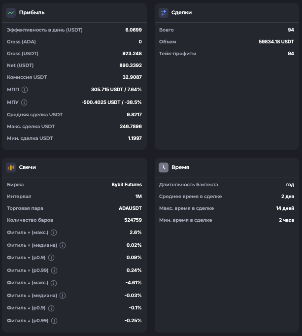 Внимание: Торговля на финансовых рынках связана с рисками потери капитала. Результаты бэктестов не гарантируют будущей доходности. Настройки подобраны для информационных целей и не являются инвестиционной рекомендацией. Любые решения о торговле вы принимаете самостоятельно.