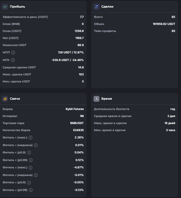 Внимание: Торговля на финансовых рынках связана с рисками потери капитала. Результаты бэктестов не гарантируют будущей доходности. Настройки подобраны для информационных целей и не являются инвестиционной рекомендацией. Любые решения о торговле вы принимаете самостоятельно.