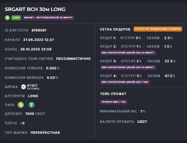 Внимание: Торговля на финансовых рынках связана с рисками потери капитала. Результаты бэктестов не гарантируют будущей доходности. Настройки подобраны для информационных целей и не являются инвестиционной рекомендацией. Любые решения о торговле вы принимаете самостоятельно.