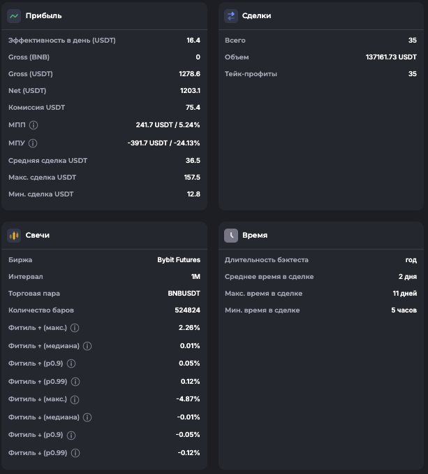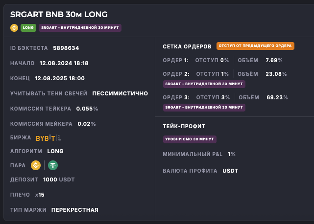 Внимание: Торговля на финансовых рынках связана с рисками потери капитала. Результаты бэктестов не гарантируют будущей доходности. Настройки подобраны для информационных целей и не являются инвестиционной рекомендацией. Любые решения о торговле вы принимаете самостоятельно.