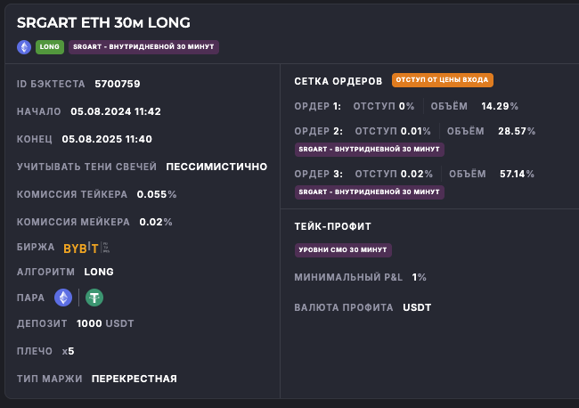Внимание: Торговля на финансовых рынках связана с рисками потери капитала. Результаты бэктестов не гарантируют будущей доходности. Настройки подобраны для информационных целей и не являются инвестиционной рекомендацией. Любые решения о торговле вы принимаете самостоятельно.