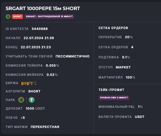 Внимание: Торговля на финансовых рынках связана с рисками потери капитала. Результаты бэктестов не гарантируют будущей доходности. Настройки подобраны для информационных целей и не являются инвестиционной рекомендацией. Любые решения о торговле вы принимаете самостоятельно.