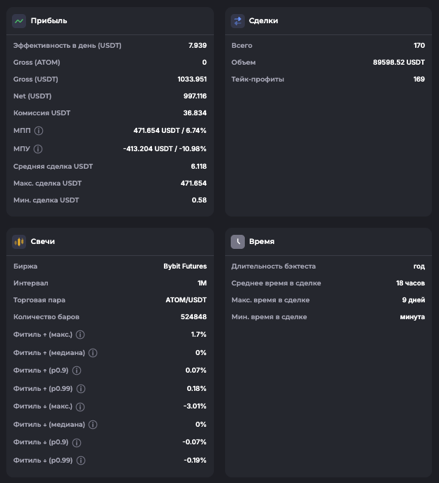 Внимание: Торговля на финансовых рынках связана с рисками потери капитала. Результаты бэктестов не гарантируют будущей доходности. Настройки подобраны для информационных целей и не являются инвестиционной рекомендацией. Любые решения о торговле вы принимаете самостоятельно.