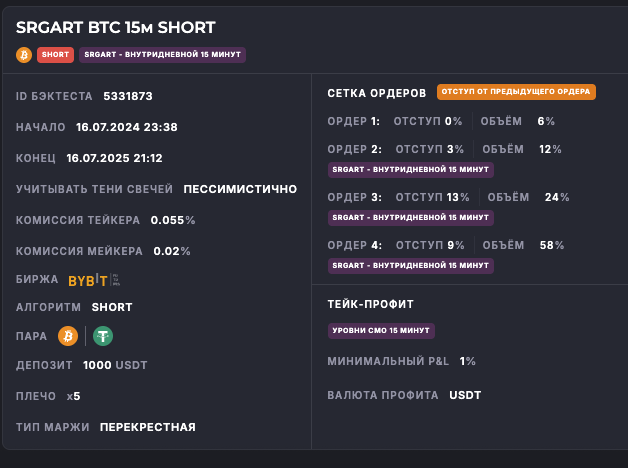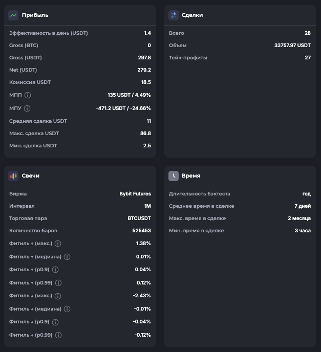Внимание: Торговля на финансовых рынках связана с рисками потери капитала. Результаты бэктестов не гарантируют будущей доходности. Настройки подобраны для информационных целей и не являются инвестиционной рекомендацией. Любые решения о торговле вы принимаете самостоятельно.