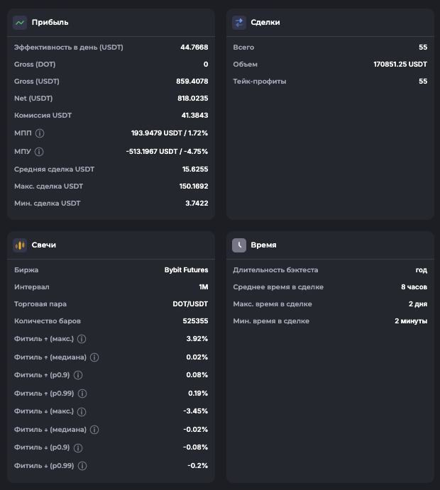 Внимание: Торговля на финансовых рынках связана с рисками потери капитала. Результаты бэктестов не гарантируют будущей доходности. Настройки подобраны для информационных целей и не являются инвестиционной рекомендацией. Любые решения о торговле вы принимаете самостоятельно.