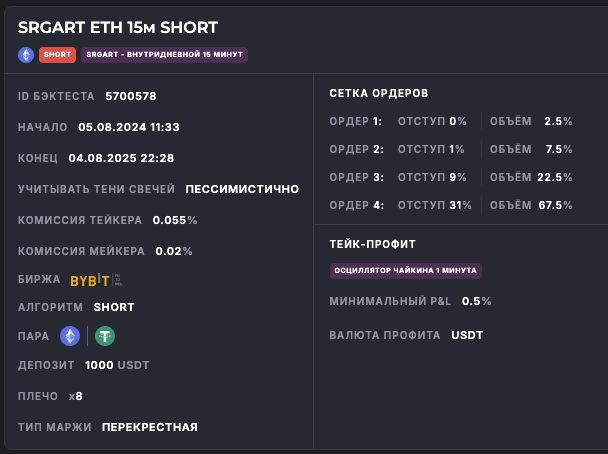 Внимание: Торговля на финансовых рынках связана с рисками потери капитала. Результаты бэктестов не гарантируют будущей доходности. Настройки подобраны для информационных целей и не являются инвестиционной рекомендацией. Любые решения о торговле вы принимаете самостоятельно.