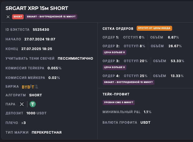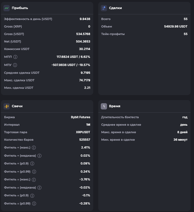 Внимание: Торговля на финансовых рынках связана с рисками потери капитала. Результаты бэктестов не гарантируют будущей доходности. Настройки подобраны для информационных целей и не являются инвестиционной рекомендацией. Любые решения о торговле вы принимаете самостоятельно.