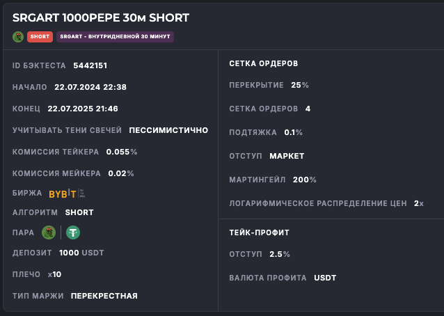 Внимание: Торговля на финансовых рынках связана с рисками потери капитала. Результаты бэктестов не гарантируют будущей доходности. Настройки подобраны для информационных целей и не являются инвестиционной рекомендацией. Любые решения о торговле вы принимаете самостоятельно.