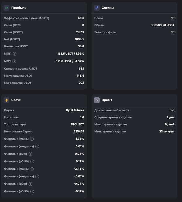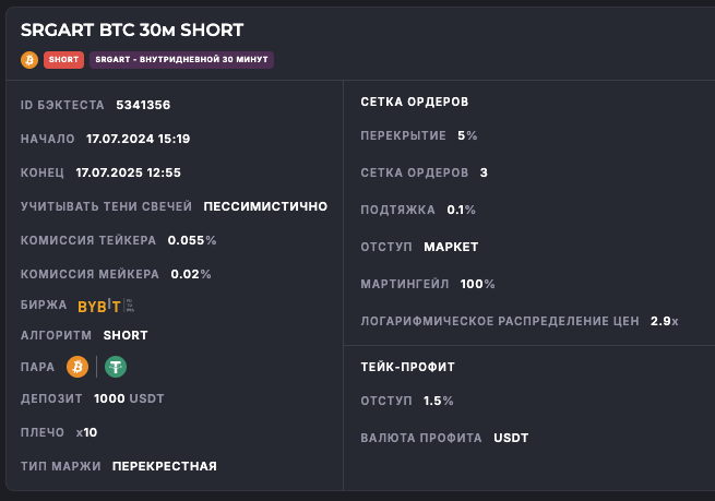 Внимание: Торговля на финансовых рынках связана с рисками потери капитала. Результаты бэктестов не гарантируют будущей доходности. Настройки подобраны для информационных целей и не являются инвестиционной рекомендацией. Любые решения о торговле вы принимаете самостоятельно.